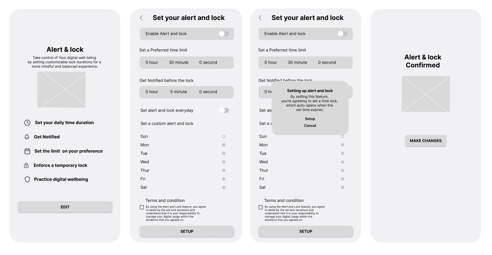 I created a high-fidelity prototype, a detailed and polished version of the final product in terms of design and functionality. Users can control their time and digital well-being by