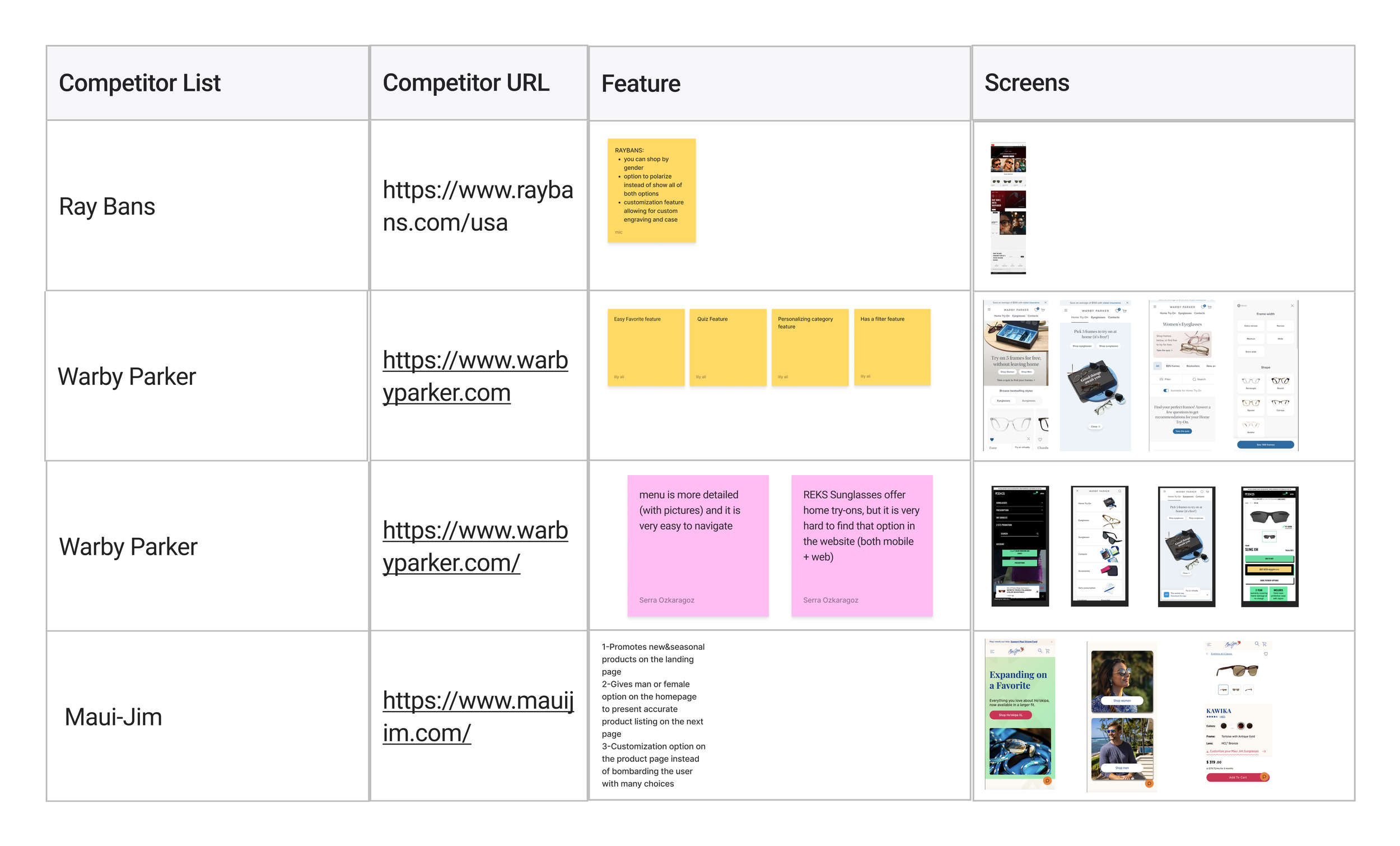 We worked on FigJam, listing competitors' features and designs.