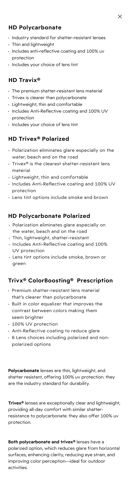 Include a quality comparison chart for goggles.
